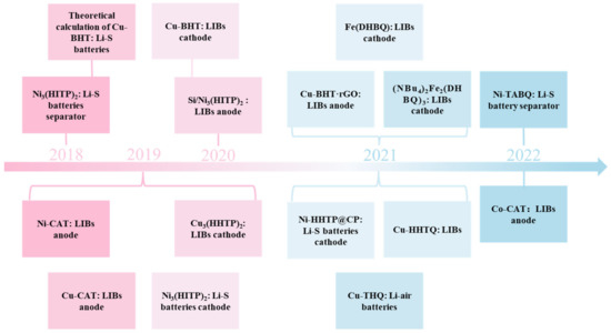 Time axis of c-MOFs application in lithium batteries.