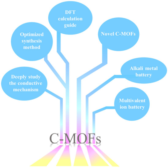 Overall, c-MOF is a promising material, regardless of the numerous challenges. The progress of c-MOF synthesis will lead to rapid and sustainable development in the fields of electronics and electrochemistry. Moreover, c-MOF has made inspiring progress in numerous aspects when applied to potential rechargeable lithium batteries, although we are a significant distance from commercialization. As the remaining problems in these batteries have been solved by several researchers in the exponentially growing battery market, other batteries are likely to coexist with LIBs and may dominate the rechargeable lithium battery market position over the next decade.