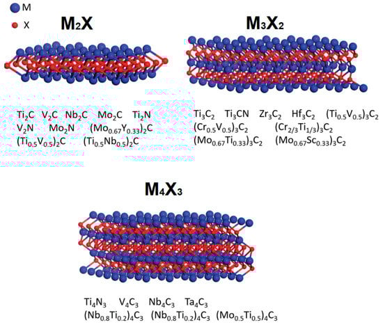 MXenes bare structures with an overview of all experimentally synthesized corresponding compositional samples. Reprinted with permission from [42]. Copyright © 2020, CC BY 4.0.