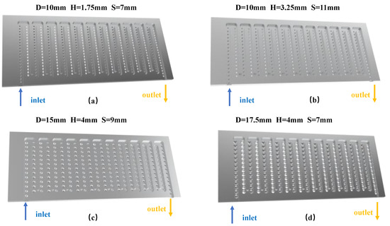 In order to analyze the effect of the parameters of this structure on the thermal performance, 16 different parameters of the lower channel structure are designed. Some of the design drawings are shown in Figure 7.