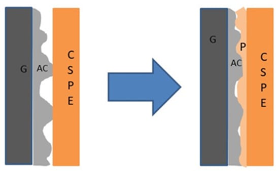 Illustration of the solid polymer electrolyte–electrode contact with and without polymer (P)-added electrodes. Here, G, AC, and CSPE represent the graphite current collector sheet, activated carbon, and composite solid polymer electrolyte (CSPE) membrane, respectively.