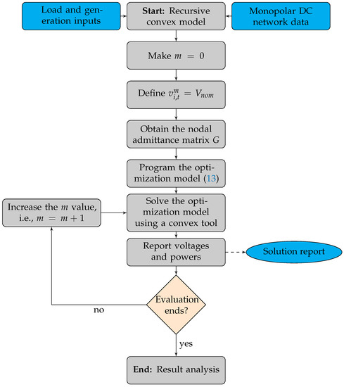 To illustrate the application of the proposed recursive convex approximation applied to the EMS for BESS and PV sources in monopolar DC distribution systems, a flowchart is presented in Figure 1.