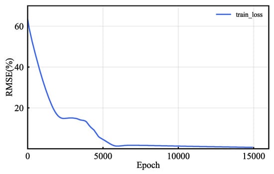 We routinely use cross-validation to evaluate model performance to obtain adequate hyper-parameters. In combination with the cross-validation technique, we set the training epochs as 15,000. Figure 8 displays a plot of the RMSE as a function versus the training epoch. As can be observed, the RMSE drops fast in the first 5000 epochs and almost reaches 0 after 12,000 epochs. Due to the decreasing tendency after 12,000 epochs, 15,000 is considered a reasonable number of training epochs. We choose a batch size of 64 to train the network as a compromise between the large and small batches. All the parameters of the LSTM-RNN are listed in Table 1.