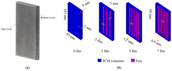 PCM container: (a) PCM container assembly; (b) PCM container inner structure.