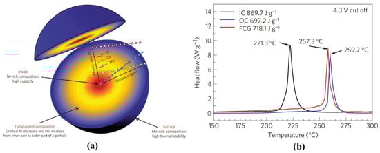 - Shi, J.L.; Qi, R.; Zhang, X.D.; Wang, P.F.; Wang, P.F.; Fu, W.G.; Yin, Y.X.; Xu, J.; Wan, L.J.; Guo, Y.G. High-Thermal-and Air-Stability Cathode Material with Concentration-Gradient Buffer for Li-Ion Batteries. ACS Appl. Mater. Interfaces 2017, 9, 42829–42835. [Google Scholar] [CrossRef] [PubMed]