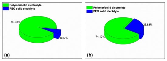 Polymers represent another category of materials which can be utilized to fabricate solid electrolytes due to their stable chemical properties at the electrode/electrolyte interface and action against dendrite growth from the Li metal anode. [126]. For example, polyethylene oxide (PEO) has been widely used over the past two decades as the basis for polymer electrolytes. This composite solid polymer electrolyte is an inorganic fibrous substrate containing PEO, ceramic powder, and a liquid electrolyte with a lithium or sodium salt [127]. Indeed, many inventions integrate polymer materials as a component of a solid-state electrolyte.