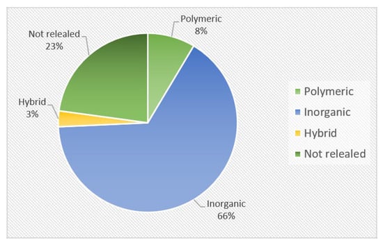 A visual assessment of patents with the key words “ceramic” or “solid electrolyte” in the title or in abstract is given in Figure 7. A total of 92 patents were registered in the investigated period. Most of them appeared in the second period, specifically after 2018. This trend is expected to continue in the future due to the immense interest shown in ASSBs.