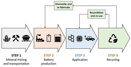 - Nurdiawati, A.; Agrawal, T.K. Creating a circular EV battery value chain: End-of-life strategies and future perspective. Resour. Conserv. Recycl. 2022, 185, 106484. [Google Scholar] [CrossRef]