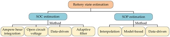 The traditional SOC estimation method is ineffective in guaranteeing accuracy when the sensor suffers from serious measurement noise or the vehicle runs in a highly dynamic environment. In recent years, a filter-based SOC estimation method has attracted extensive attention due to its high accuracy and strong robustness. With the accurate estimation of SOC, some scholars focus on the joint estimation of SOC–SOP, with consideration given to the correlation between SOC and SOP estimation.