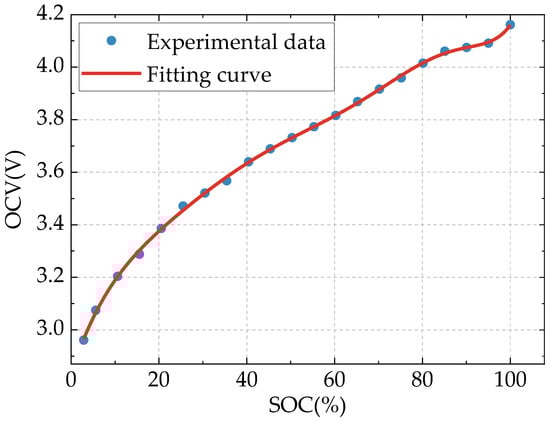 The OCV–SOC fitting curve was obtained, as shown in Figure 8.