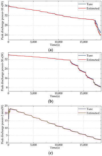 Results of peak discharge power estimation: (a) 10 s; (b) 30 s; (c) 2 min.