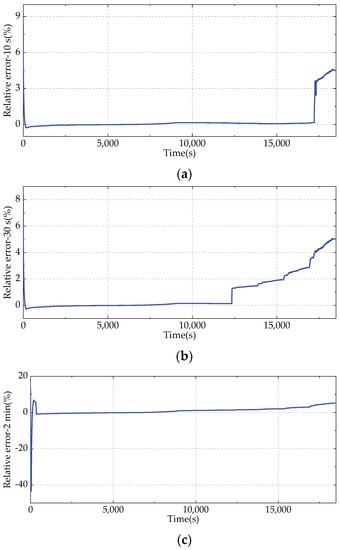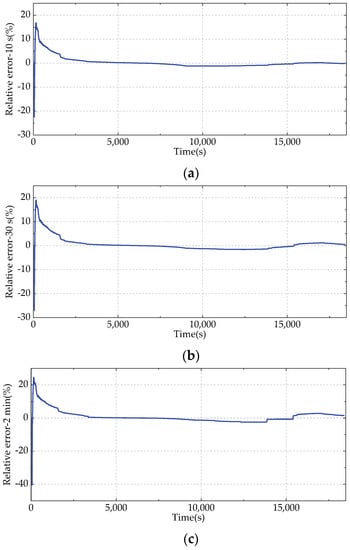 Results of peak discharge power relative error: (a) 10 s; (b) 30 s; (c) 2 min.