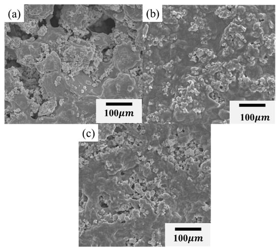 FE-SEM images of composite cathode sheets with different LiTFSI contents: (a) LiTFSI-0%, (b) LiTFSI-3%, and (c) LiTFSI-4% on a LATP/PVDF-HFP electrolyte membrane.