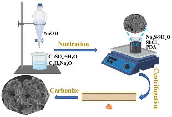 2.3. Synthesis of Cu2S@C, Sb2S3@C