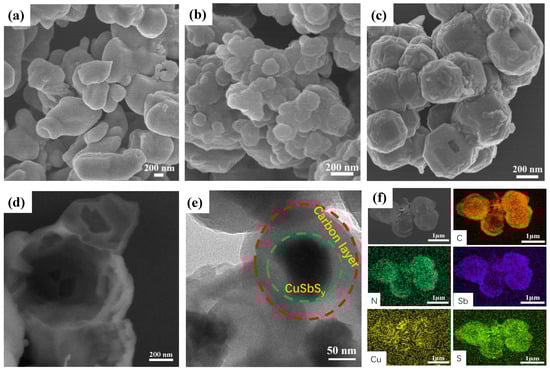 2.4. Synthesis of CuSbSy@C and CuSbSy