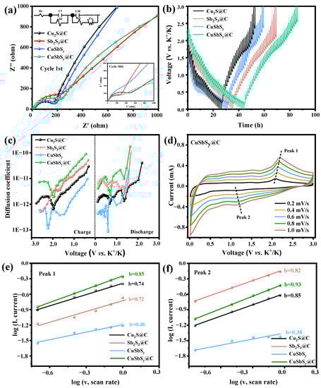 - Chang, C.-B.; Chen, K.-T.; Tuan, H.-Y. Large-Scale Synthesis of Few-Layered Copper Antimony Sulfide Nanosheets as Electrode Materials for High-Rate Potassium-Ion Storage. J. Colloid Interface Sci. 2022, 608, 984–994. [Google Scholar] [CrossRef]