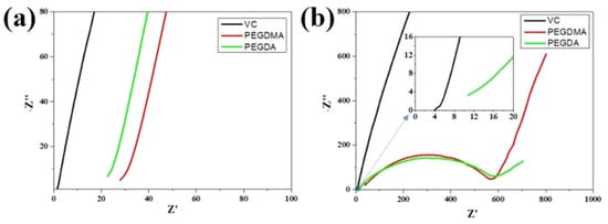 - Ryou, M.-H.; Lee, Y.M.; Cho, K.Y.; Han, G.-B.; Lee, J.-N.; Lee, D.J.; Choi, J.W.; Park, J.-K. A gel polymer electrolyte based on initiator-free photopolymerization for lithium secondary batteries. Electrochim. Acta 2012, 60, 23–30. [Google Scholar] [CrossRef]