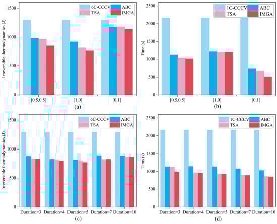 where is the current per second, is the maximum acceptable current corresponding to the current SoC, and is the charging time. It can be seen from the above that the total length of the sequence of different individuals is the same, and the charging time depends on the number of zeros at the end of the sequence. The sum of , and is the total polarization voltage. Since the two objectives represent the charging time and irreversible heat, respectively, the three dimensions are different, and their value ranges are different, which requires a balance adjustment treatment before coupling. Therefore, this section adopts the score system for normalization, and a higher score indicates a better optimization result.
