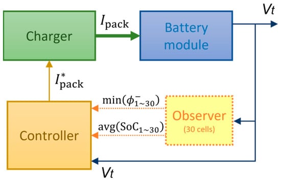 Outline block diagram of a plating-free charging scheme for a battery module based on the anode potential observer.