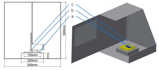 Schematic diagram of LIB thermal runaway experimental device: (a) heating plate; (b) battery surface; (c) gas environment.