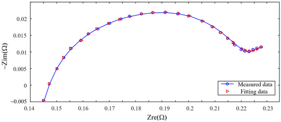 Taking B1 at a certain aging stage as an example, Figure 7 shows the fitting result of the model on the impedance spectrum of the battery at this stage. The average relative error of amplitude between model impedance and actual impedance is 0.04%, and the average relative error of phase angle is 9.82%. Parameters of the ECM are used as inputs to the ANN model described in next section, which provides a mapping between impedance spectrum, a measurable quantity, and the mass of lithium plating.