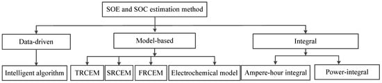 To improve a EULIB’s performance, an algorithm for a high-accuracy estimation of the SOE and SOC is needed []. The SOE and SOC estimation methods for EULIBs are shown in Figure 1: integral, data-driven and model-based methods [].