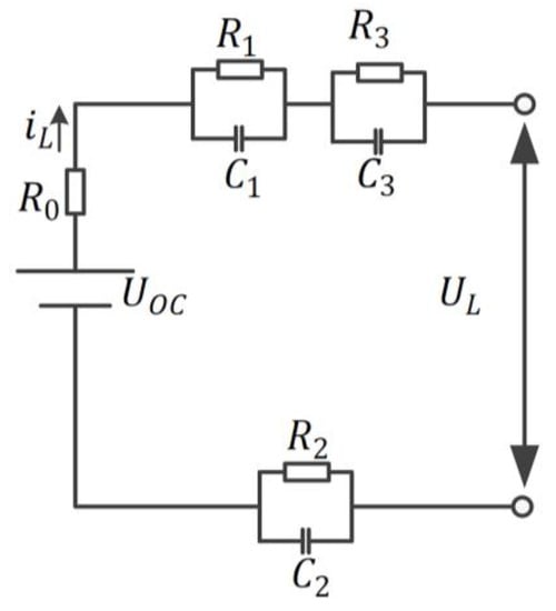 The equivalent circuit model is adopted in the model-based method, which mainly includes the electrochemical model, first-order resistor-capacitance equivalent model (FRCEM), second-order resistor-capacitance equivalent model (SRCEM), third-order resistor-capacitance equivalent model (TRCEM), and so on. In Refs. [,], an electrochemical model was used which achieved a good balance between accuracy and computational cost. Ref. [] proposed a joint method based on a dual H infinity filter. In dynamic operation, estimators with different time scales were used based on an FRCEM, and the SOE and SOC estimation errors were less than 2%. In Ref. [], two FRCEMs were established online via an extended Kalman filter (EKF). The prediction accuracy was verified through a complex driving simulation. The SRCEM has the advantages of a simple model and small computational costs, but its estimation accuracy is not high. To further improve the estimation accuracy, the SRCEM has been widely investigated. Ref. [] proposed a joint method and estimated a LIB’s state under dynamic working conditions. In Ref. [], a method was proposed based on an SRCEM which could estimate a battery’s SOC, SOE, state of power (SOP) and state of health (SOH) simultaneously. The results of dynamic load experiments indicated that it has a high level of precision and better robustness. The SRCEM, based on the FRCEM, improves the accuracy of SOE estimations but does not fully characterize the charging and discharging performance of an LIB. The TRCEM is widely used to estimate the SOC, SOP, SOH, SOE and other parameters and can not only improve the accuracies of the parameters but also can characterize the performance of the LIB well.