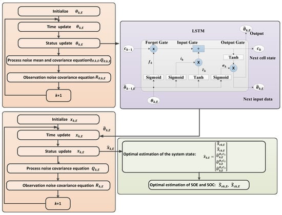 An SOE and SOC estimation flow chart of a EULIB via AEKF and LSTM is shown in Figure 3.
