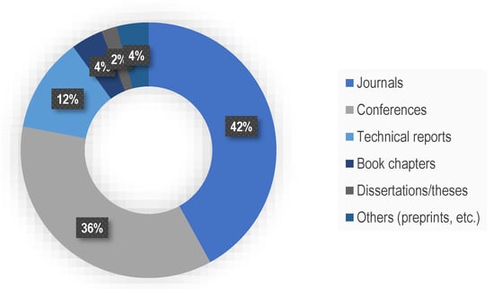 The classification of the publication types is also depicted in Figure 2, which shows that 78% of the publications are journal and conference articles, 12% are related to technical reports, and the rest includes book chapters, dissertations, and other publications, e.g., preprints, etc.