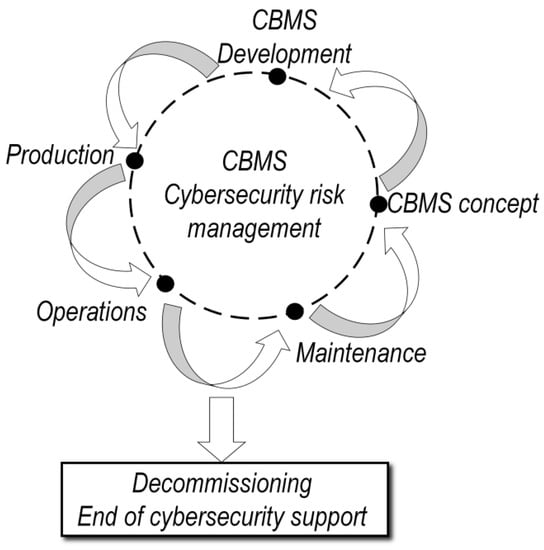 Figure 15. Cybersecurity lifecycle for CBMS development, production, operation, and maintenance.