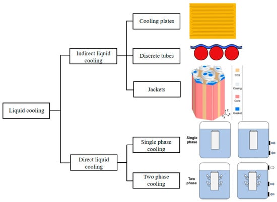 Classification of liquid cooling and corresponding examples [8,48,49,53].