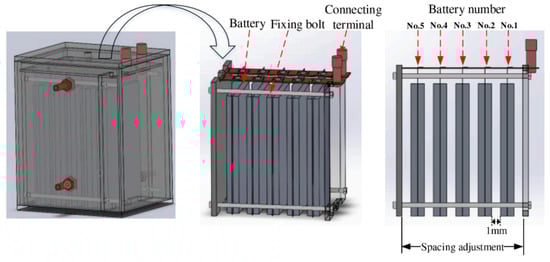 With the energy crisis and environmental pollution becoming increasingly prominent, vigorously developing clean energy, promoting environmental improvement, and advancing green and low-carbon construction has become an important task. Traditional fuel vehicles mainly use non-renewable fossil energy as a power source, which not only consumes more fossil energy, but also produces exhaust gas, which contributes to the greenhouse effect. In this context, electric vehicles have received a lot of attention because of their advantages, such as low pollution and high efficiency [1]. The key task in the development of electric vehicles is to find a suitable energy storage system that allows battery vehicles to have a long driving range and fast acceleration [2]. Lithium-ion batteries (LIBs) have been widely used in energy storage systems of electric vehicles due to their high energy density, high power density, low pollution, no memory effect, low self-discharge rate, and long cycle life [3,4,5,6]. Studies have shown that the performance of LIBs is closely related to the operating temperature [7,8]. Generally, the optimum operating temperature range for Li-ion batteries is 15–35 °C [9], and the maximum temperature difference between batteries should be controlled within 5 °C [5,10]. Therefore, a reasonable and effective battery thermal management system (BTMS) is necessary to enable the battery module to work safely and exhibit good charge and discharge performance [11].