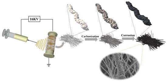 The experimental materials included polyacrylonitrile (PAN, Mw = 150,000), N, N-Dimethylformamide (DMF, AR), 2-methylimidazole (AR), zinc nitrate (Zn (NO3)2 6H2O, AR), ethanol (AR), methanol (AR), hydrochloric acid (HCl, AR), and argon (Ar, high quality). The chemicals and reagents in the experiment as purchased without further purification.