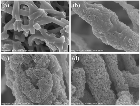 SEM images of PCNF (a), ZPCNF-0.5 (b), ZPCNF-1.0 (c) and ZPCNF-1.5 (d).