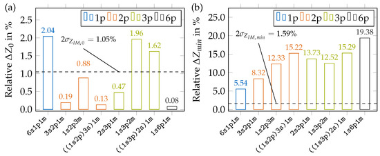 Figure 5 illustrates the relative deviations and of the total setup voltage between reference measurement and fault measurement for all interconnection topologies investigated, along with the determined confidence interval. The 6s1p1m topology exhibited the largest relative deviation with 2.04%, while the topologies 1s3p2m and ((1s3p)2s)1m also reveal significant relative deviations with 1.96% (1s3p2m) and 1.62% (((1s3p)2s)1m), respectively (Figure 5a). Based on the measurement results, the pure serial connection 6s1p1m is usable for fault detection via , with 2p and 3p topologies only conditionally. The serial modules (1s2p3m and 1s3p2m, respectively) show the largest relative deviation in both supergroups. The assessment of of the pure parallel connection 1s6p1m does not seem to be suitable for error detection in this fault case.