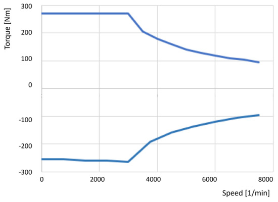 In the element e-drive or electric motor (11) the general data of the motor are defined (see Table 5), and in Figure 8 the map of the motor moment is presented.