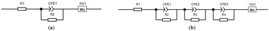 The equivalent schemes: (a)—for samples NCM111 and NCM622; (b)—for NCM811.