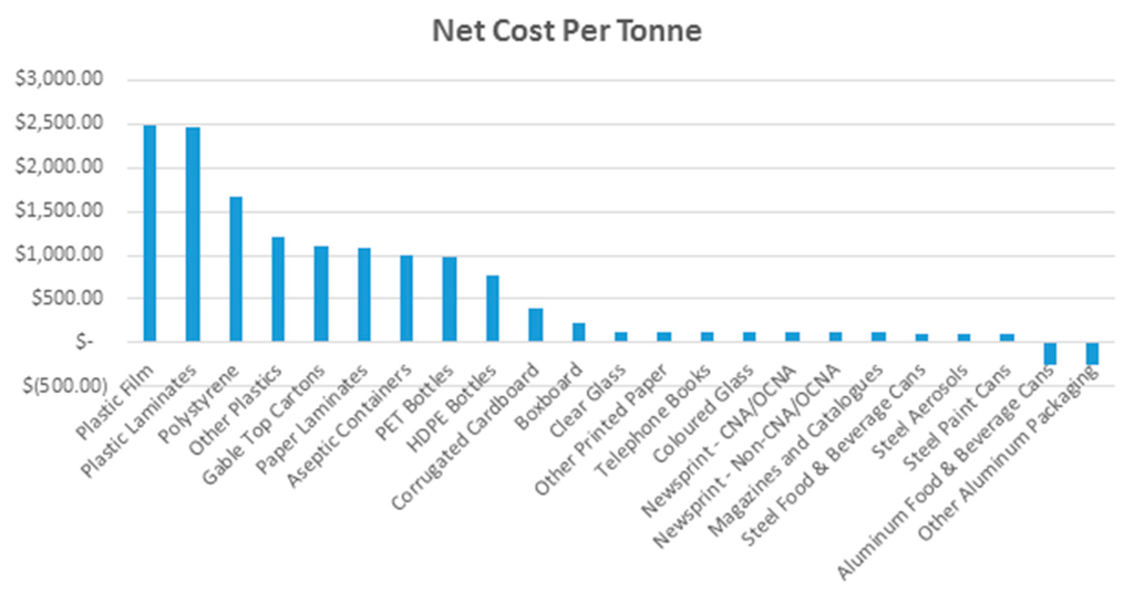 Net Cost Per Tonne for Blue Box Materials (Adapted from Stewardship Ontario PIM Model [16]).