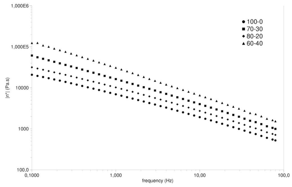 Overlay of the complex viscosity (η*) of the composites.