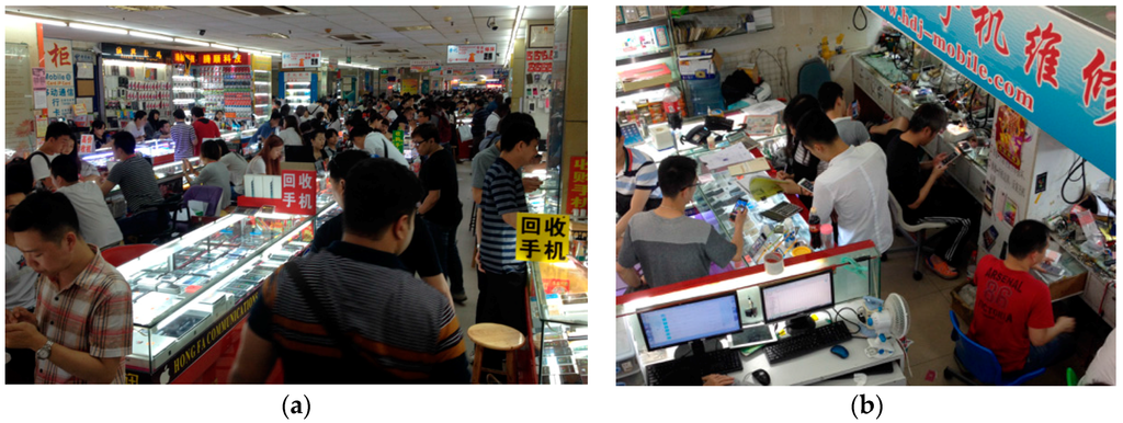 - Steuer, B.; University of Vienna, Vienna, Austria. Personal observations within Guang’an Zhonghai Electronics Markets in Beijing, China. 2015. [Google Scholar]