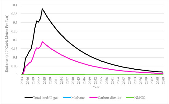 - Goushki, M.N.; Shiri, M.A.; Nozari, M. Estimation of Gas Emissions using the LandGEM Model from the Landfill of Baft County, Kerman, Iran. Environ. Monit. Assess. 2023, 195, 1444. [Google Scholar] [CrossRef]