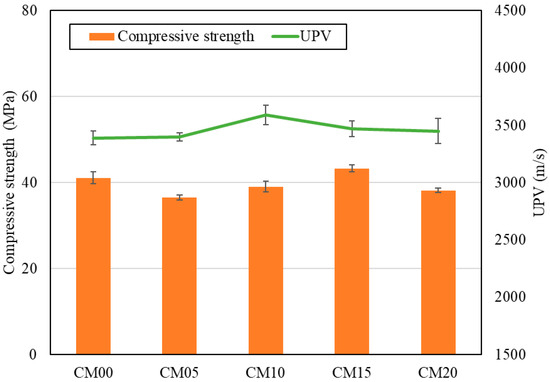 Figure 9. Comparison of compressive strength and UPV of mortar.