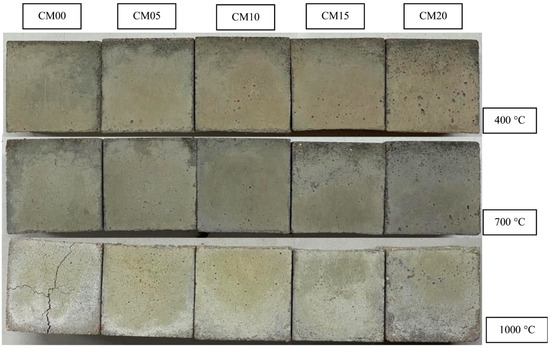 Figure 15. Color and appearance changes of mortar after exposure to elevated temperatures.