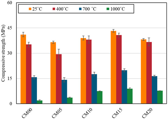 Figure 17. Compressive strength of mortar after exposure to elevated temperatures.