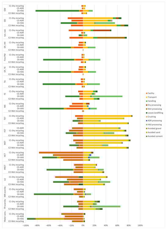 - Coelho, A.; de Brito, J. Environmental Analysis of a Construction and Demolition Waste Recycling Plant in Portugal—Part II: Environmental Sensitivity Analysis. Waste Manag. 2013, 33, 147–161. [Google Scholar] [CrossRef] [PubMed]