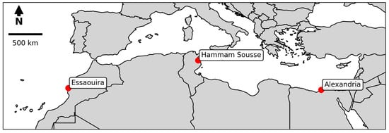 - Haseler, M.; Abdallah, L.B.; El Fels, L.; El Hayany, B.; Hassan, G.; Escobar-Sánchez, G.; Robbe, E.; von Thenen, M.; Loukili, A.; El-Raouf, M.A.; et al. Assessment of beach litter pollution in Egypt, Tunisia, and Morocco: A study of macro and meso-litter on Mediterranean beaches. Environ. Monit. Assess. 2025, 197, 123. [Google Scholar] [CrossRef] [PubMed]