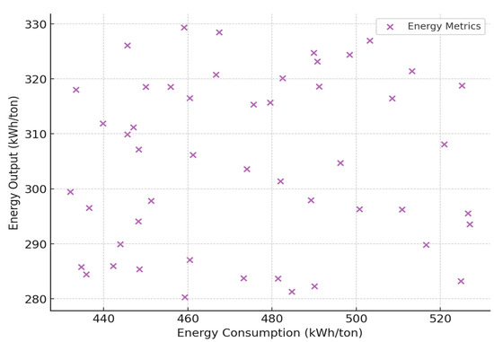 In Figure 2, the energy recovery vs. energy consumption (in kWh/ton) is presented for the pyrolysis scenario, and the reasons why a logistic regression model was chosen for these correlations are explained. This scatter plot captures the peak energy metrics of the data and provides insights into the trends and variations in energy performance within the pyrolysis process in the EU context.