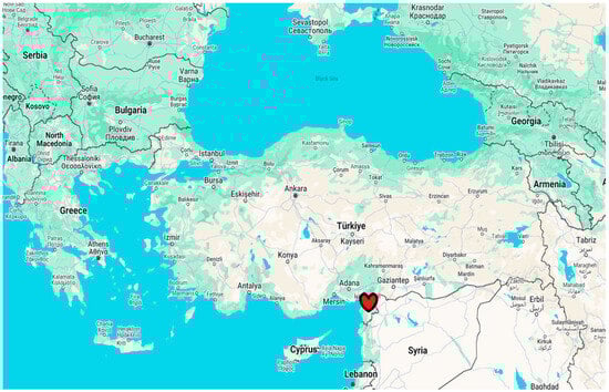 Hatay is situated in the southeastern part of Türkiye, bordered by Syria to the south with a coordinate of latitude 36° N, longitude 36° E, as shown in Figure 2. The province is in the Csa zone according to the Köppen–Geiger Climate Zone Classification [28]. The annual average temperature is around 21 °C, which is 6% higher than Türkiye’s average [29]. As of 2023, the population of Hatay is approximately 2.3 million; therefore, Hatay is one of the most populous provinces in Türkiye.
