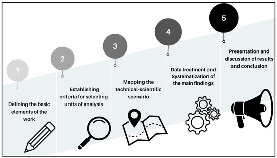The study employed the Integrative Review (IR) method to comprehensively search for, identify, select, and analyze documents from various sources [76]. This method is preferable to that of the Bibliometric Study or the Literature Review, which focus more on the quantitative identification of trends, citation networks, and authors and on a more in-depth analysis of scientific documents. In contrast, IR allows for the inclusion of various sources, such as patents, websites, white papers, sustainability reports, etc. [77]. When conducting an IR, researchers must define the research question and objectives, reserving hypothesis formulation for quantitative studies that require testing, which does not apply in this work. The next step involves establishing criteria for the inclusion and exclusion of documents, followed by collecting a substantial amount of material based on the defined parameters. Finally, the collected documents undergo thorough analysis and interpretation [78,79,80]. The IR supported mapping the CE’s Technical–Scientific Scenario (TSS) in this work. The TSS structure allows the exploration of multiple sources of evidence, such as academic articles, leading authors, research funding agencies, patents, company reports, and government regulations. Beyond traditional bibliographic references, these diverse sources enrich the understanding of the current state of knowledge on the subject. Researchers have established rigorous and replicable criteria to standardize the search strategy, selection process, data collection, and information organization to ensure consistency and transparency.