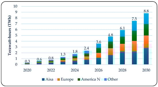 In today’s world, batteries are indispensable, powering everything from massive industrial machinery to tiny consumer electronics. Over the past few decades, the global battery market has experienced unprecedented growth, driven by technological advancements by the increasing adoption of electric vehicles (EVs), and the proliferation of consumer electronics. As shown in Figure 1 [1], the global battery market is poised for substantial growth from 0.3 terawatt-hours (TWh) in 2020 to 1.8 TWh in 2024. With the accelerating energy transition and the push towards decarbonization by countries and consumers, global battery demand could surge exponentially, potentially reaching nearly nine terawatt-hours by 2030, five times the levels seen in 2024. Therefore, for stakeholders hoping to take advantage of the opportunities provided by this quickly changing market, knowing the fundamental drivers of this demand and the ramification of diverse businesses is vital.